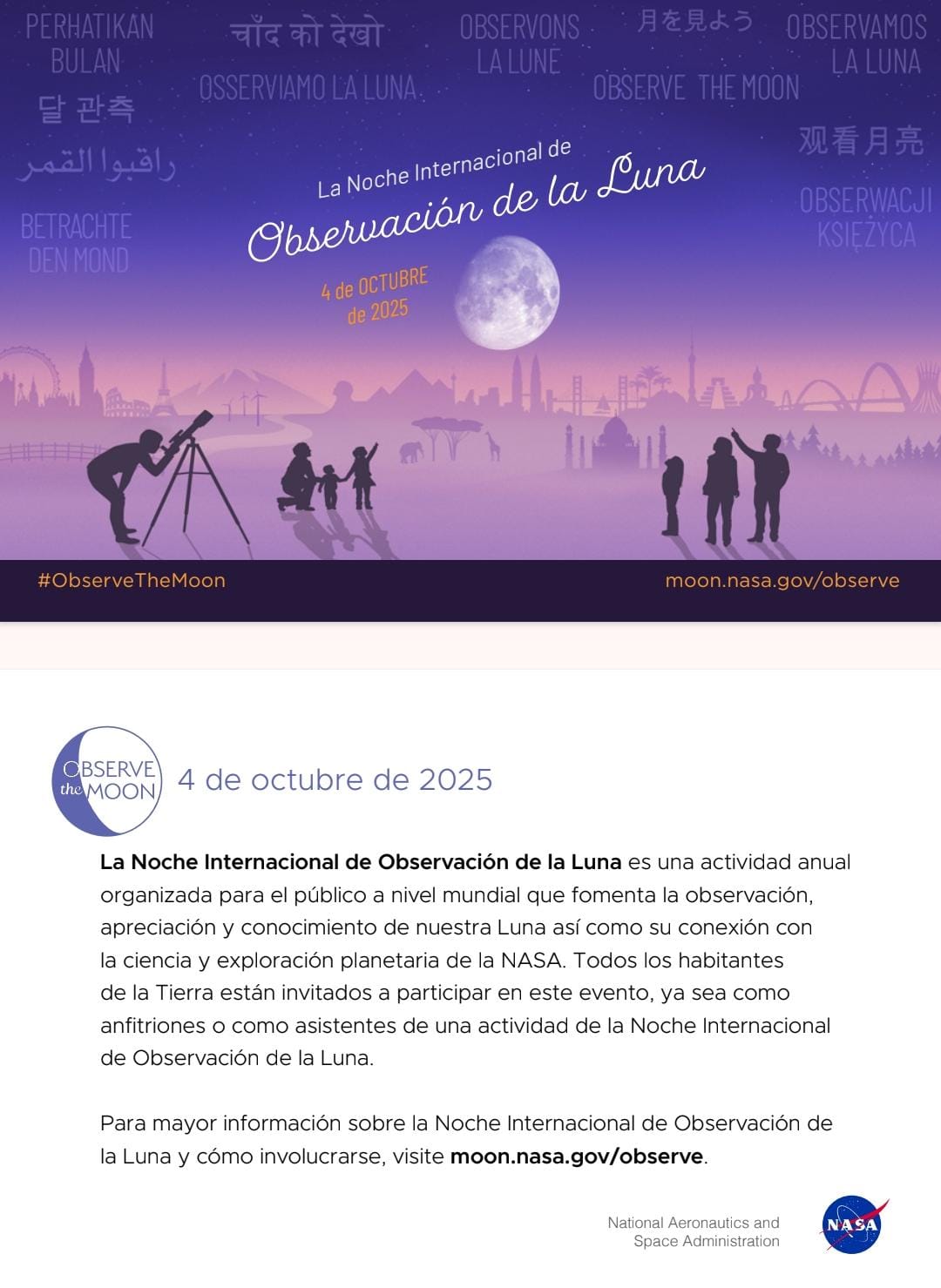 Es una actividad anual organizada para el público a nivel mundial que fomenta la observación, apreciación y conocimiento de nuestra Luna así como su conexión con la ciencia y exploración planetaria de la NASA.